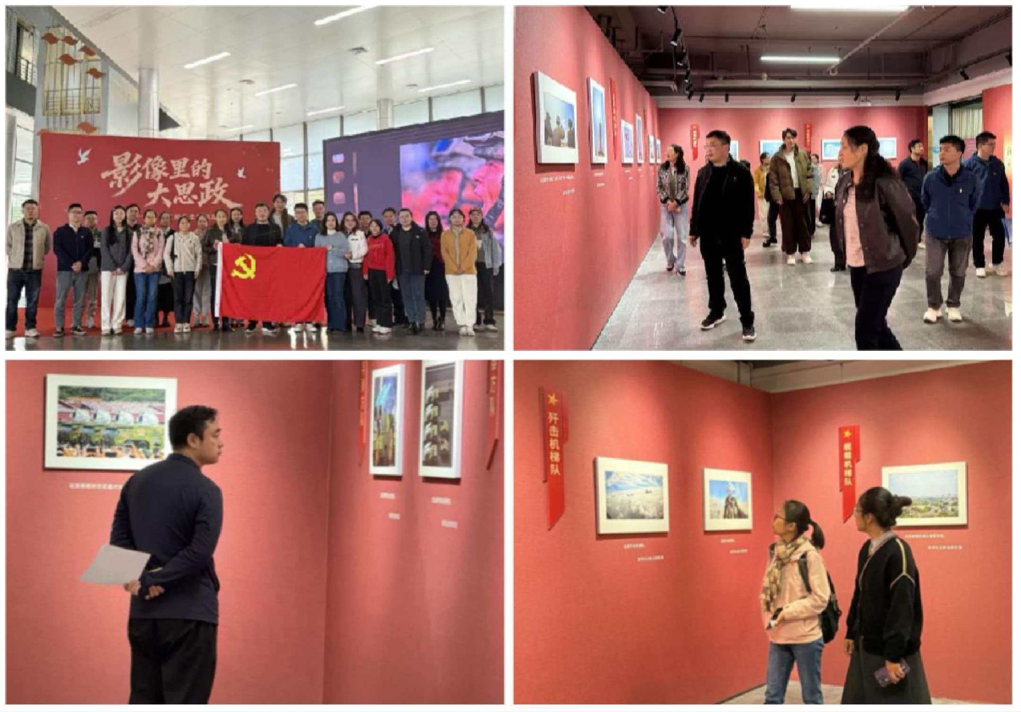 教师党支部于学校图书馆展厅组织开展了“影像铸魂·强军报国”主题党日活动。党员同志们集中参观了“影像里的大思政”九三阅兵全国巡展。该展览通过100余幅精选摄影作品,全景式展现了九三阅兵中受阅部队的昂扬风貌、新型武器装备的震撼亮相场景以及人民群众欢庆阅兵的热烈场面。