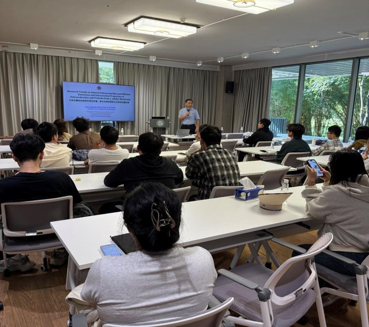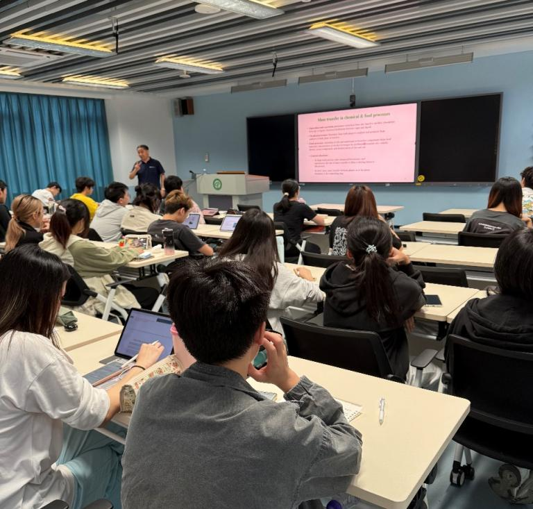 为进一步提升人才培养国际化水平,在学校2025年国际学术周活动中,我院邀请香港理工大学吴建勇(Jian-Yong WU)教授于11月10—14日为学院本科生讲授全英文课程《食品工艺学》,并面向全校学生开设了题为《天然多糖研究趋势和香菇多糖、蛋白的高效提取以及营养保健性能》的科普讲座。