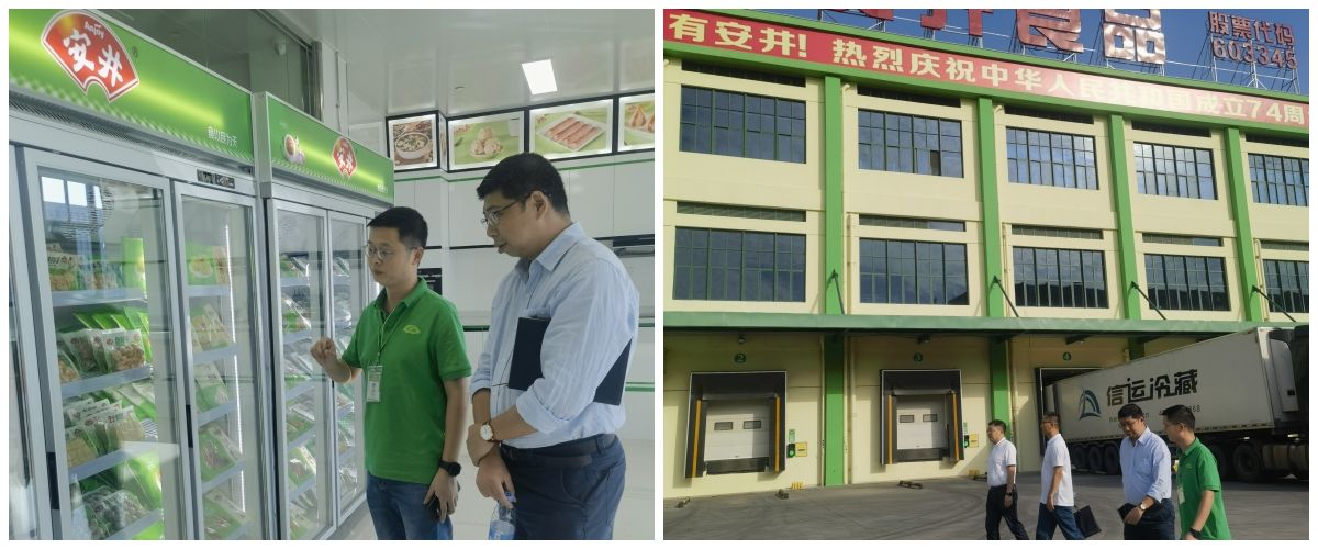 的发展定位、专业设置、师资力量、人才培养以及产学研合作等情况。双方围绕学生实习实践、产学研融合等方面进行了深入交流,并表示希望未来能够结合各自优势开展进一步合作。随后,谢炯标一行参观了广东安井食品有限公司的产品展柜、实验室以及物流基地。